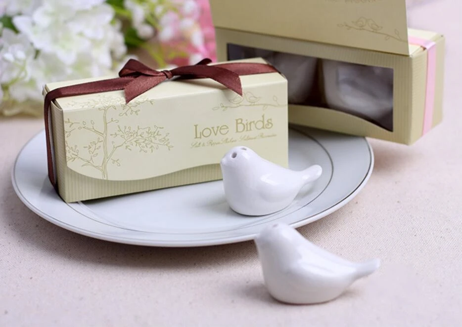 Us 86 7 15 Off Ceramic Love Birds Seasoning Cans Wedding Marriage Engagement Party Gifts Salt Pepper Shaker 50sets 50 Boxes Birds In Party