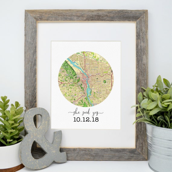 She Said Yes Map Engagement Gift Personalized Engagement Gift For Couple Engagement Party Gifts Proposal Location Gift Newlyweds
