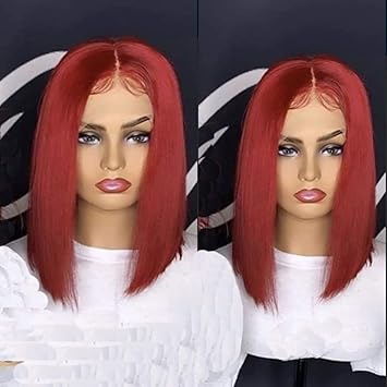 Amazon Com Red Short Blunt Cut Bob Human Hair Pre Plucked 130