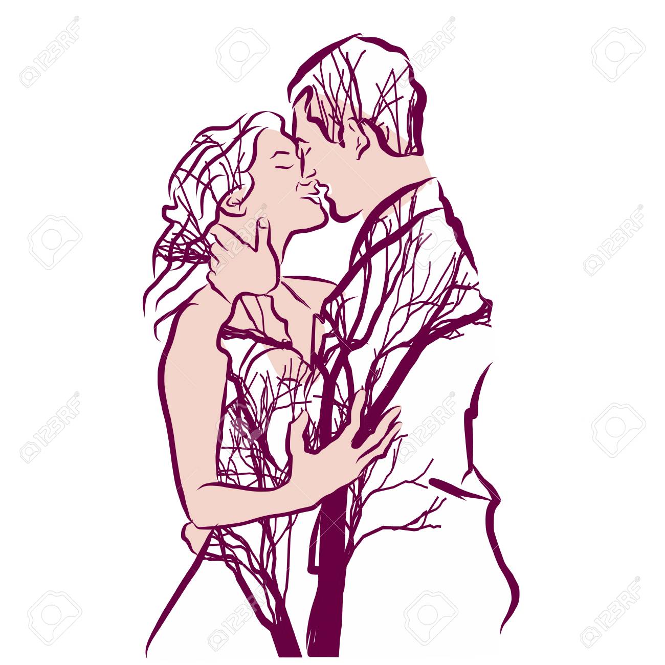 Couple And Trees Tattoo Art Digital Wall Art Vector Outline