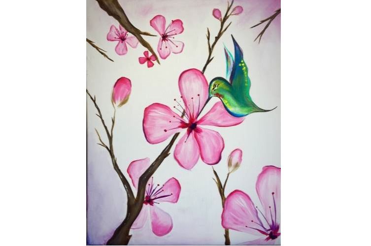 Paint Nite Hummingbird And Cherry Blossom Simplicity Painting