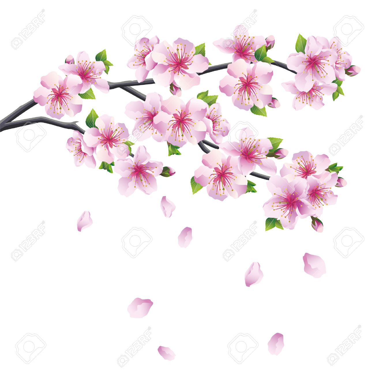 Flowers Falling From Branches Illustration Cherry Blossom Peach