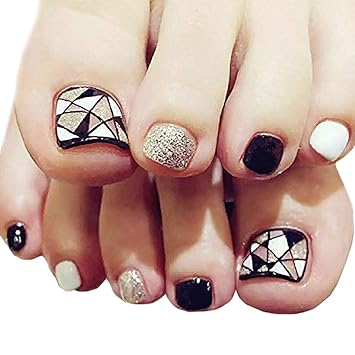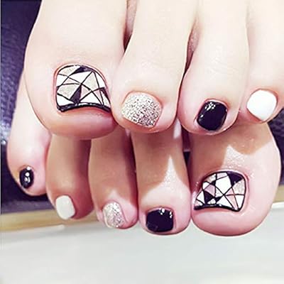 Amazon Com Fstrend Silver Sequin False Toenails Black White